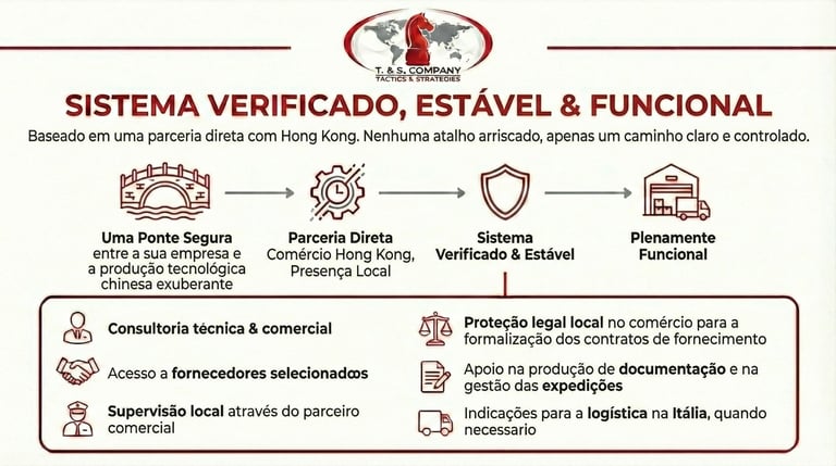 A TS Company oferece ao mercado italiano um modelo comprovado que permite às empresas identificar, desenvolver, produzir e importar produtos tecnológicos da China de forma segura, transparente e com suporte completo.