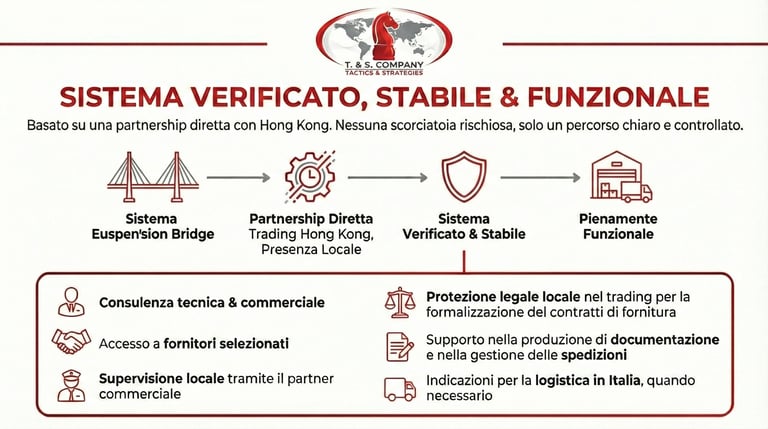 TS Company mette a disposizione del mercato italiano un modello collaudato che permette alle imprese di identificare, sviluppare, produrre e importare prodotti tecnologici dalla Cina in modo assistito, sicuro e trasparente.